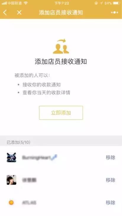 店员接收通知:多人接入同一个收款二维码,同时接收“收款通知”和“当天收款详情”,免去了对账时一一确认的麻烦,让对账更加方便。